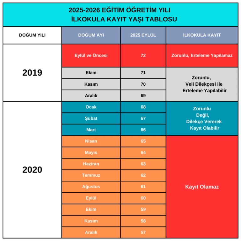 2025-2026 Eğitim Öğretim yılında ilkokula başlayacak öğrencilerin okul kayıtları, MERNİS adres bilgileri esas alınarak e-Okul sisteminden yapılacaktır.